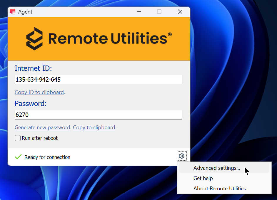 Agent를 사용하는 경우, Agent 창의 오른쪽 하단에 있는 기어 아이콘을 클릭하고 고급 설정을 선택합니다: