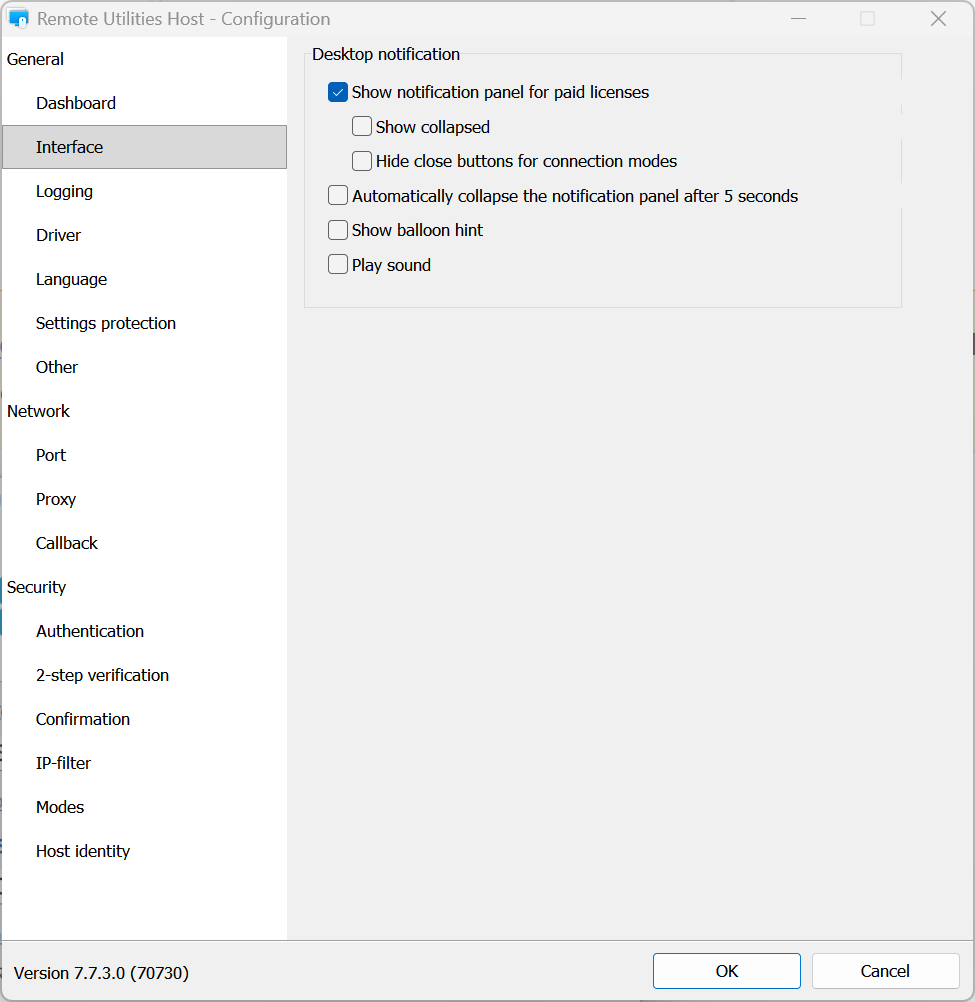 - 인터페이스 탭으로 이동합니다. 알림 패널을 켜기 위해 알림 패널 표시 옵션을 선택하고 끄기 위해 이 옵션의 선택을 해제합니다: