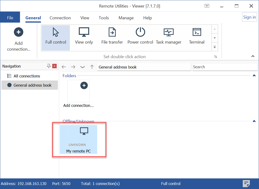 - Viewer에서 주소록에서 대상 연결을 선택합니다: