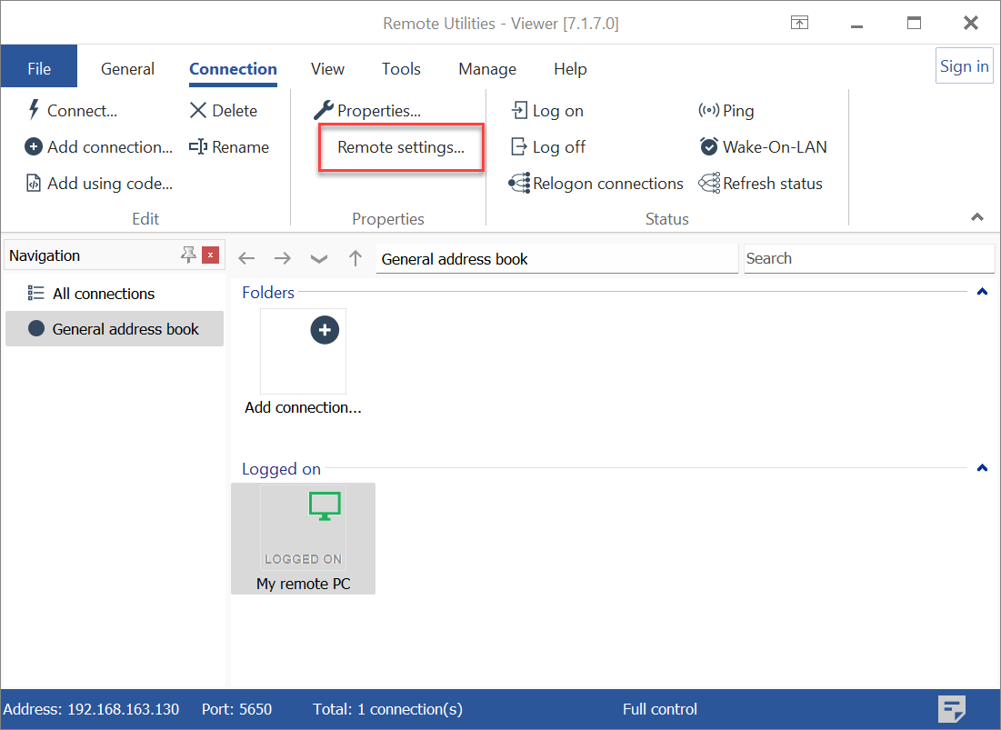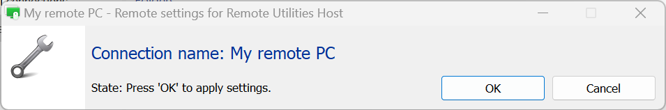 - Viewer가 원격 Host와의 연결을 설정하고 설정을 엽니다: