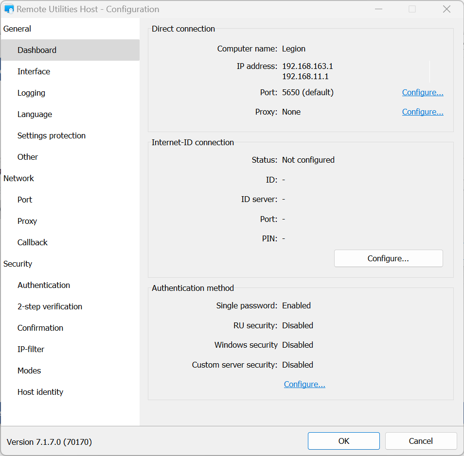 - Host 설정 창이 나타납니다. Host 설정에 원하는 모든 변경을 수행하고 확인을 클릭합니다:
