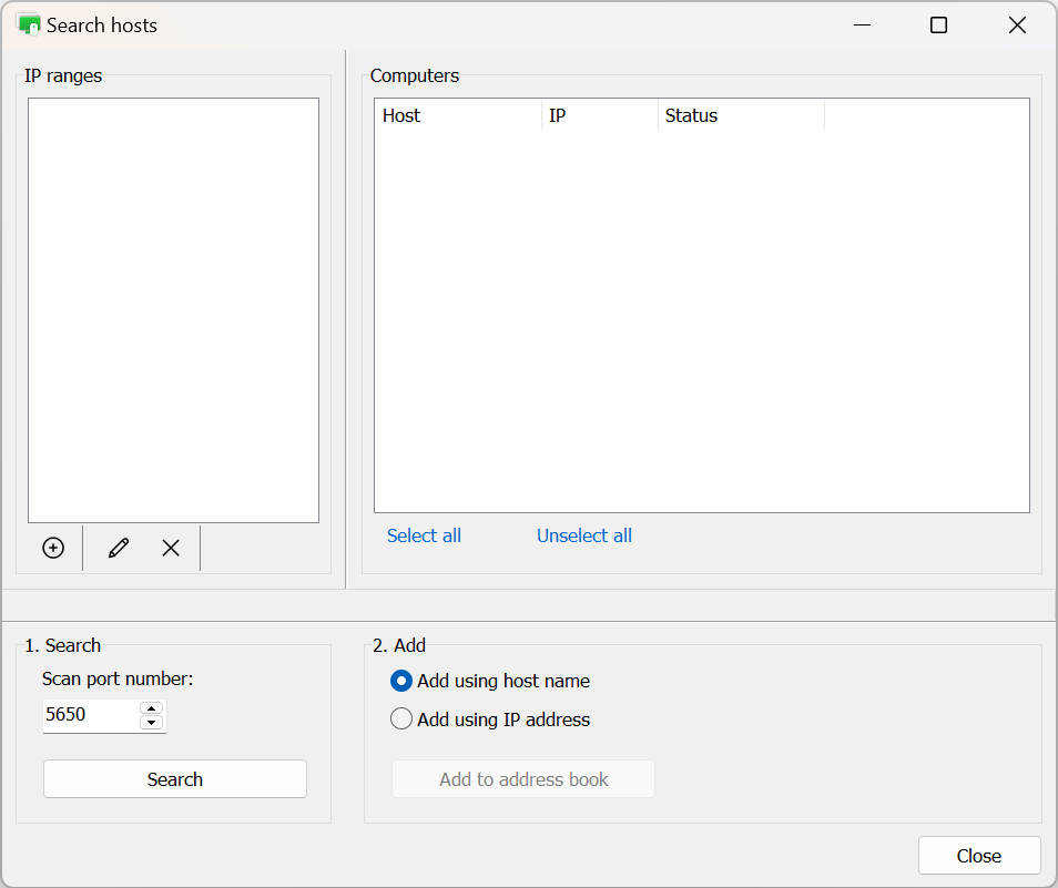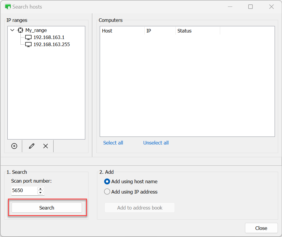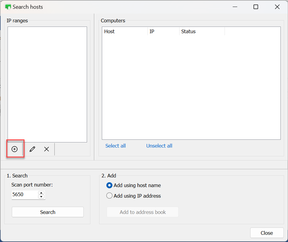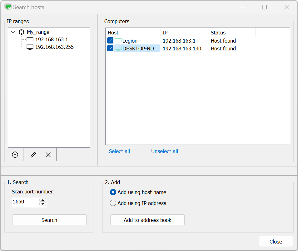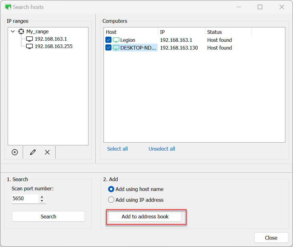 - 스캔 결과 창에서 추가할 호스트를 선택하고 주소록에 추가를 클릭합니다: