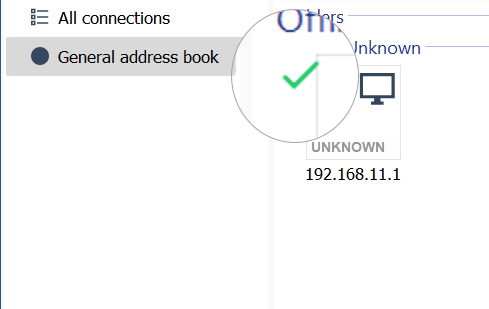 - Jika komputer jarak jauh boleh dicapai, tanda cek hijau kecil akan muncul di sebelah gambar kecil sambungan: