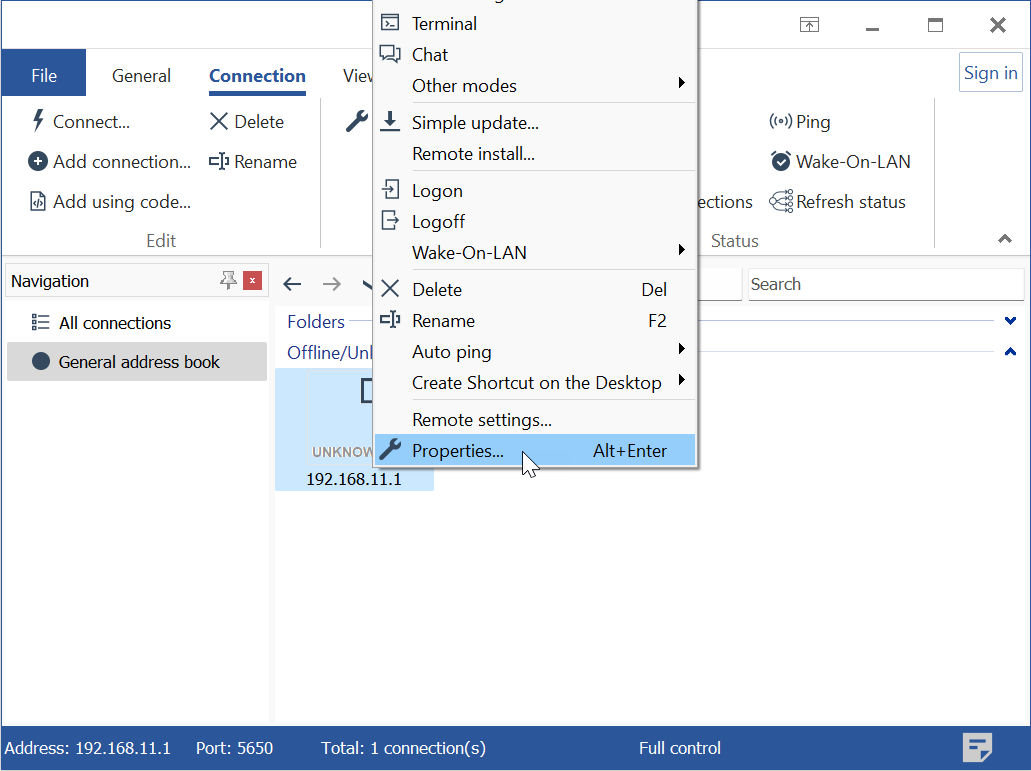 Anda mempunyai pilihan untuk menyegarkan status sambungan secara manual untuk semua komputer jarak jauh dalam buku alamat anda. Perintah ini boleh digunakan untuk kedua-dua sambungan terus dan sambungan Internet-ID.