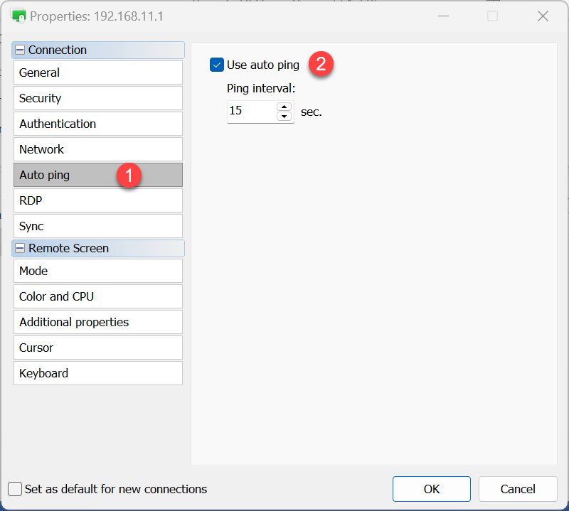 Untuk mengaktifkan auto-ping dan mengkonfigurasi interval: