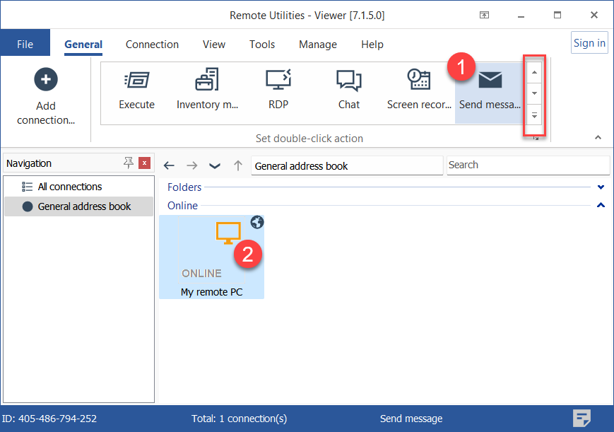 - Op het Algemeen tabblad selecteert u Bericht verzenden en dubbelklikt u op een verbinding in uw adresboek: