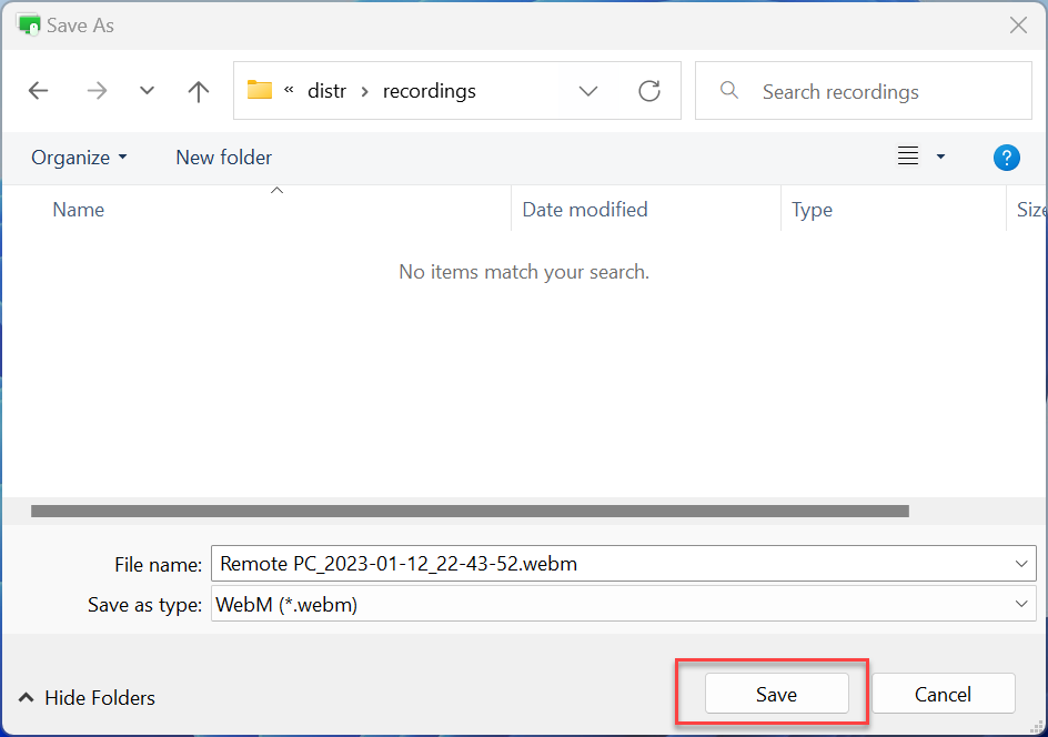 Remote Utilities allows you to record a video of the remote session in the WebM file format.