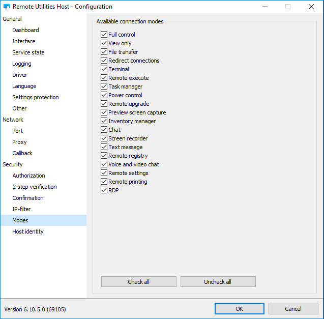 Access permissions are set on the Host side, not the Viewer's. Yes, you right saying that there are global permissions for connection modes in Host settings: