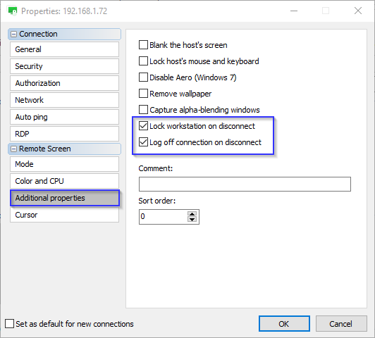 Although there are two other similar options - to lock remote workstation or log off the connection upon terminating a remote session.