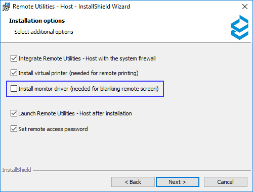 You can install the monitor driver during the Host installation as well by selecting the corresponding checkbox on the Installations Options step: