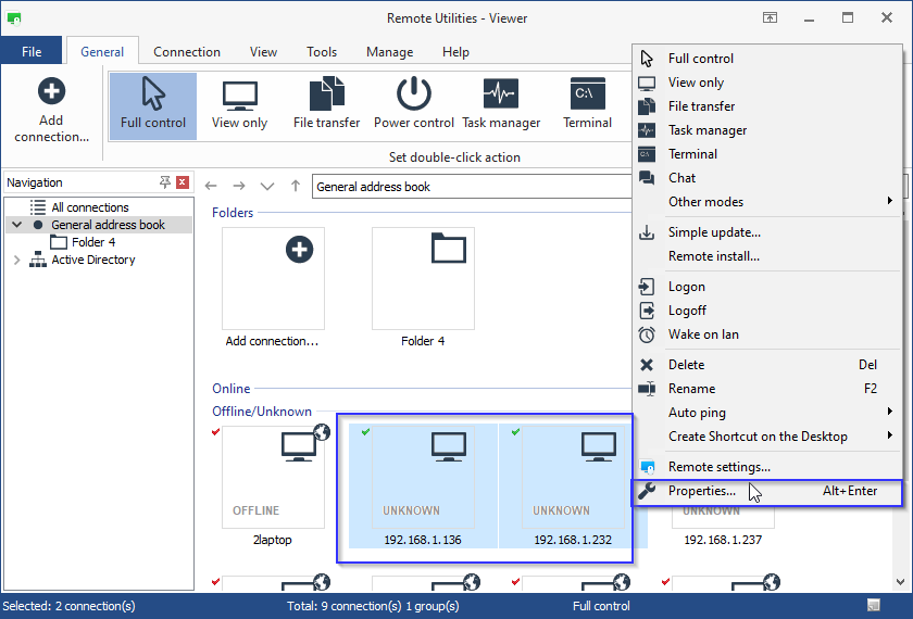 1. Select multiple connections in your connection list, then right-click and select Properties: