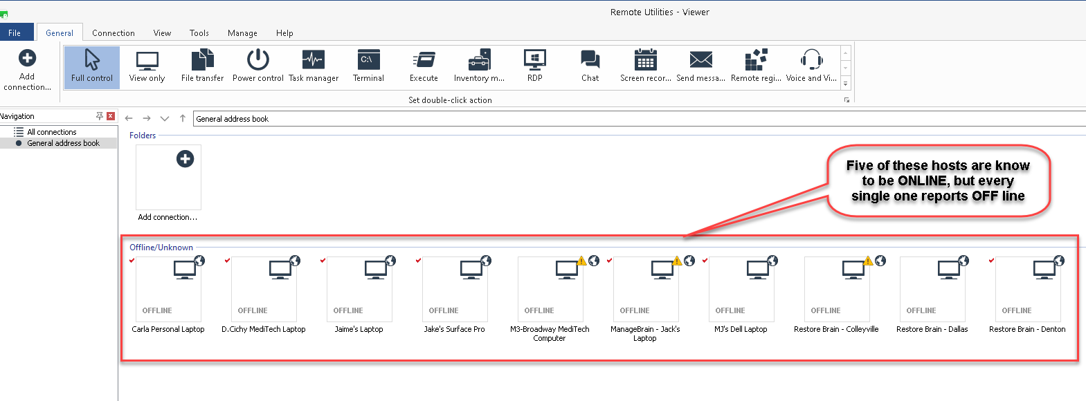 Fr om time to time, Viewer reports that every single host is offline when they are not. I have tried everything when this happens to get Viewer to refresh and find the online hosts to no avail.