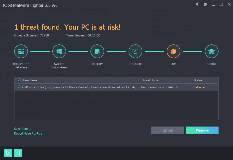 IOBit Malware Fighter Pro 6.3 Reporting Threat