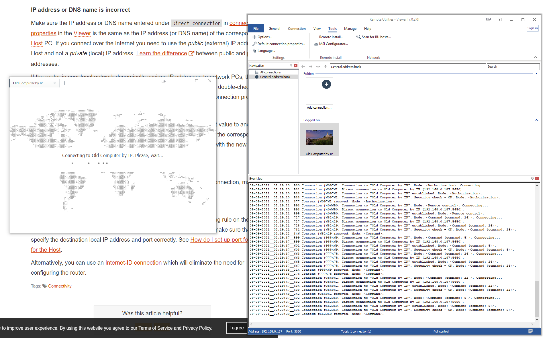 09-09-2021__02:12:51__375 Connection #928708. Connection to "Old Computer by IP". Mode: <Remote control>. Connecting...