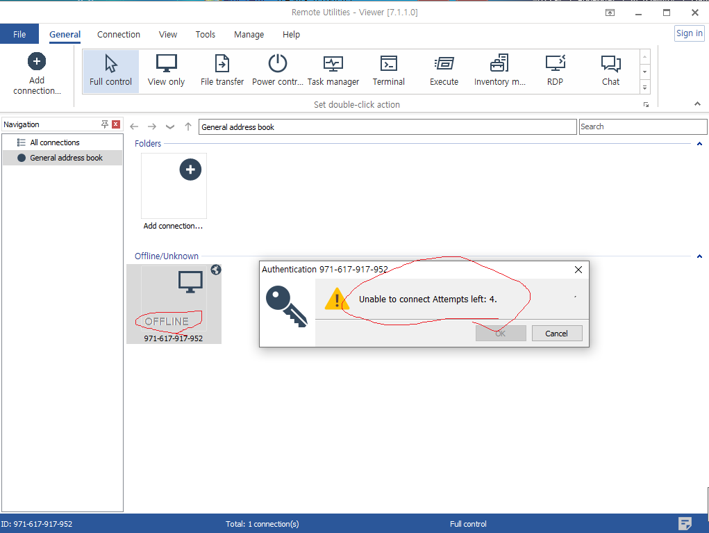 but I can't connect to Agent. (Display online -> Try connect -> Display 'unable to connect Attemts Left 5~1 -> Display Offline -> Display online again -> endless loop)