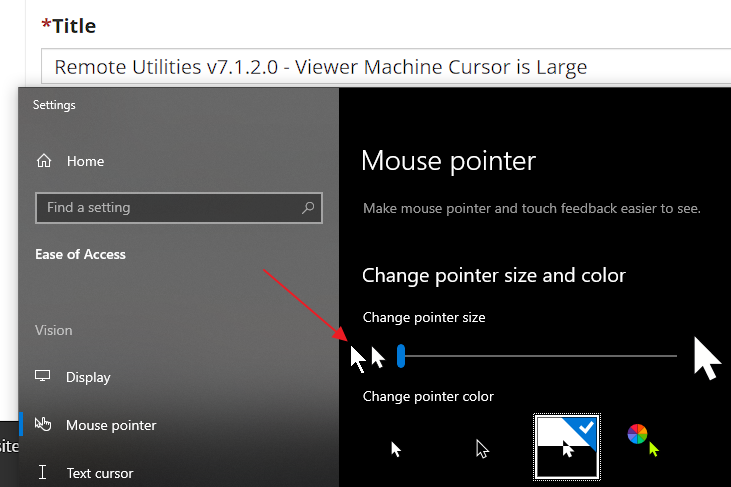 I originally saw this large cursor when I first installed Remote Utilities and remoted into my first host machine. The cursor was larger and I figured it was just a setting thing or how RUT likes to display a cursor.