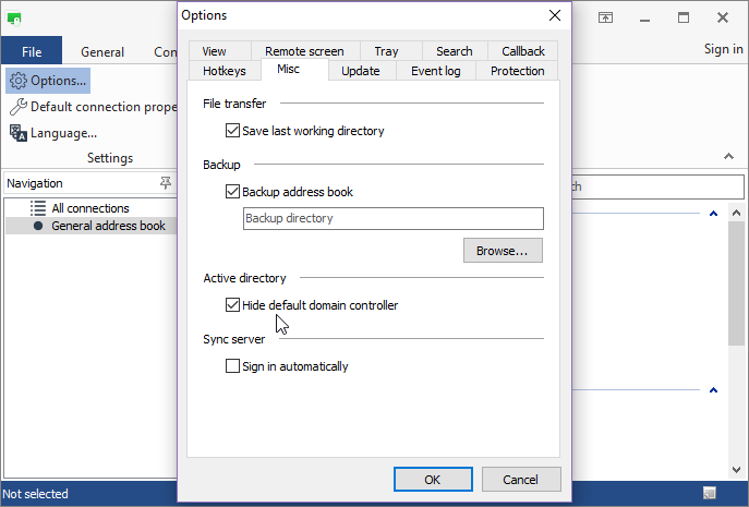 If this is the case, please try to disable showing the Active directory tree. Open the Viewer, click Tools ➝ Options, navigate to the Misc tab and enable the Hide default domain controller checkbox.