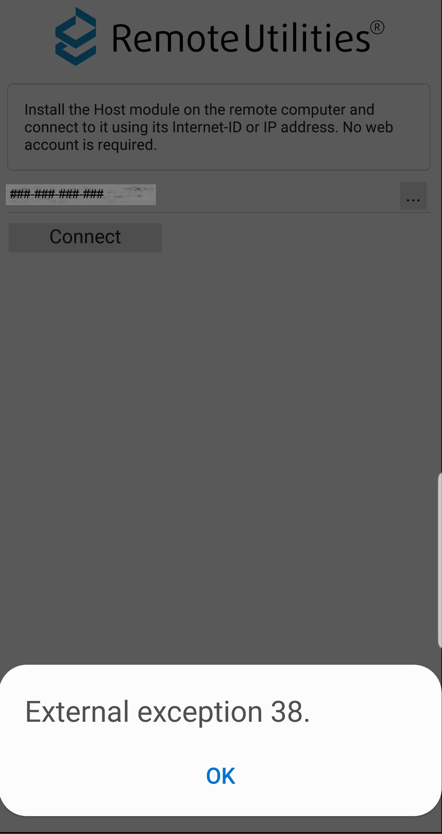 The connection info is not saved so I have to close the app and enter the ID every time I want to connect.