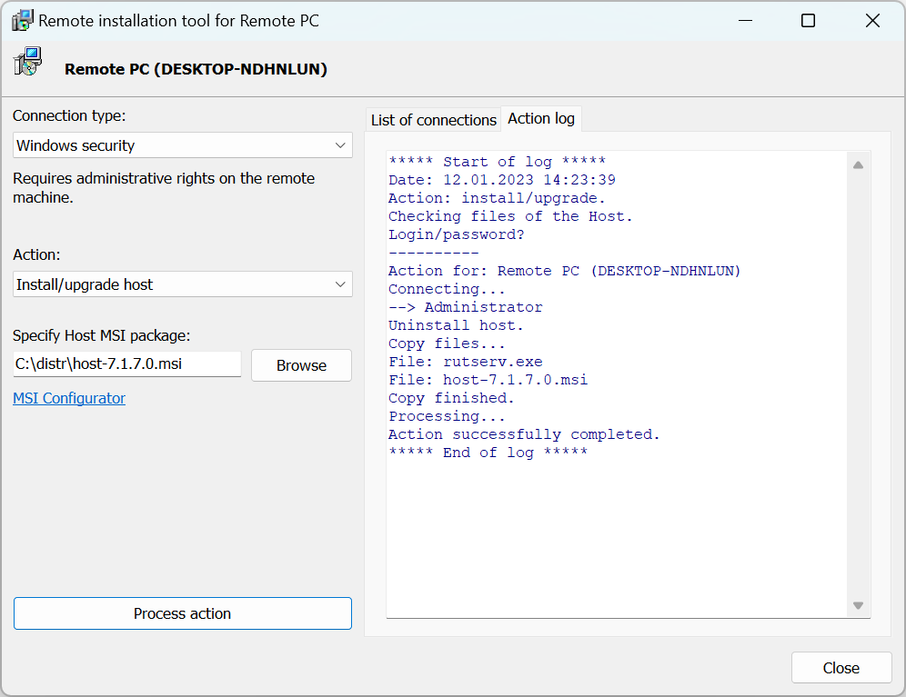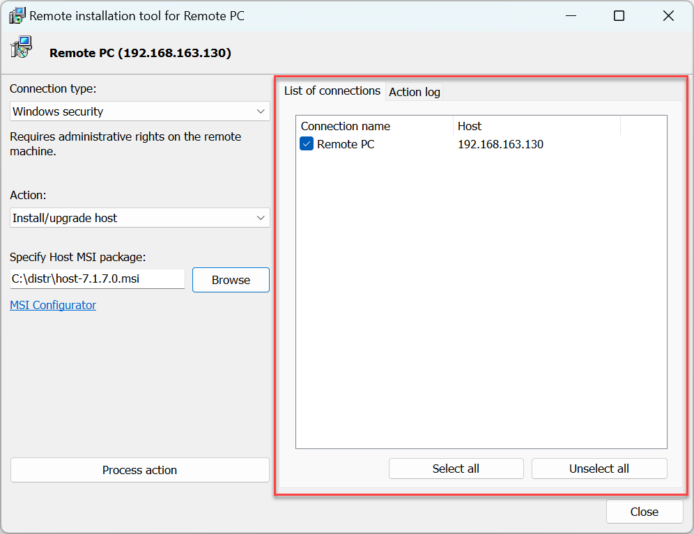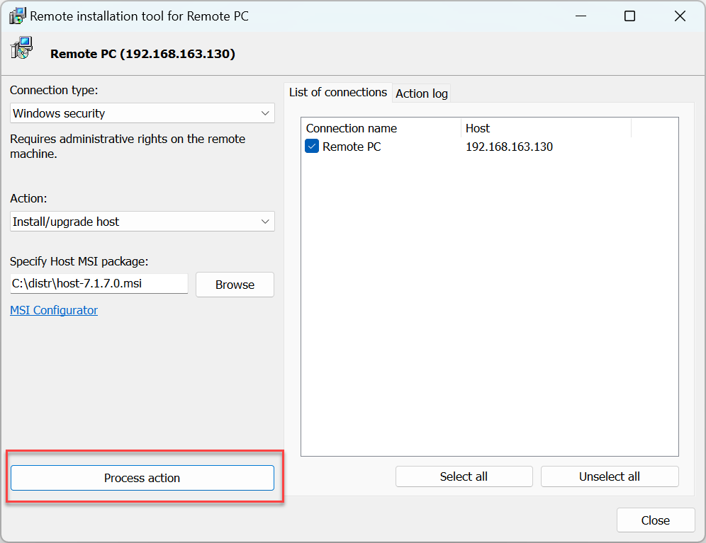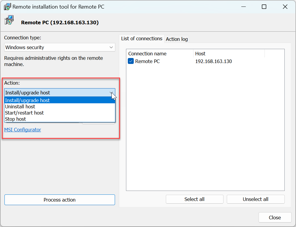 - เลือก ติดตั้ง/อัปเกรด Host เพื่อติดตั้งแพ็คเกจ Host ในคอมพิวเตอร์ระยะไกลหรืออัปเกรดการติดตั้งที่มีอยู่.