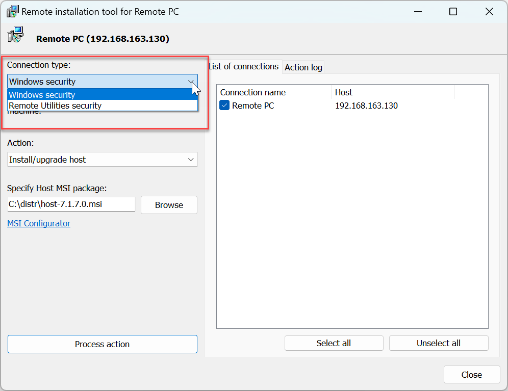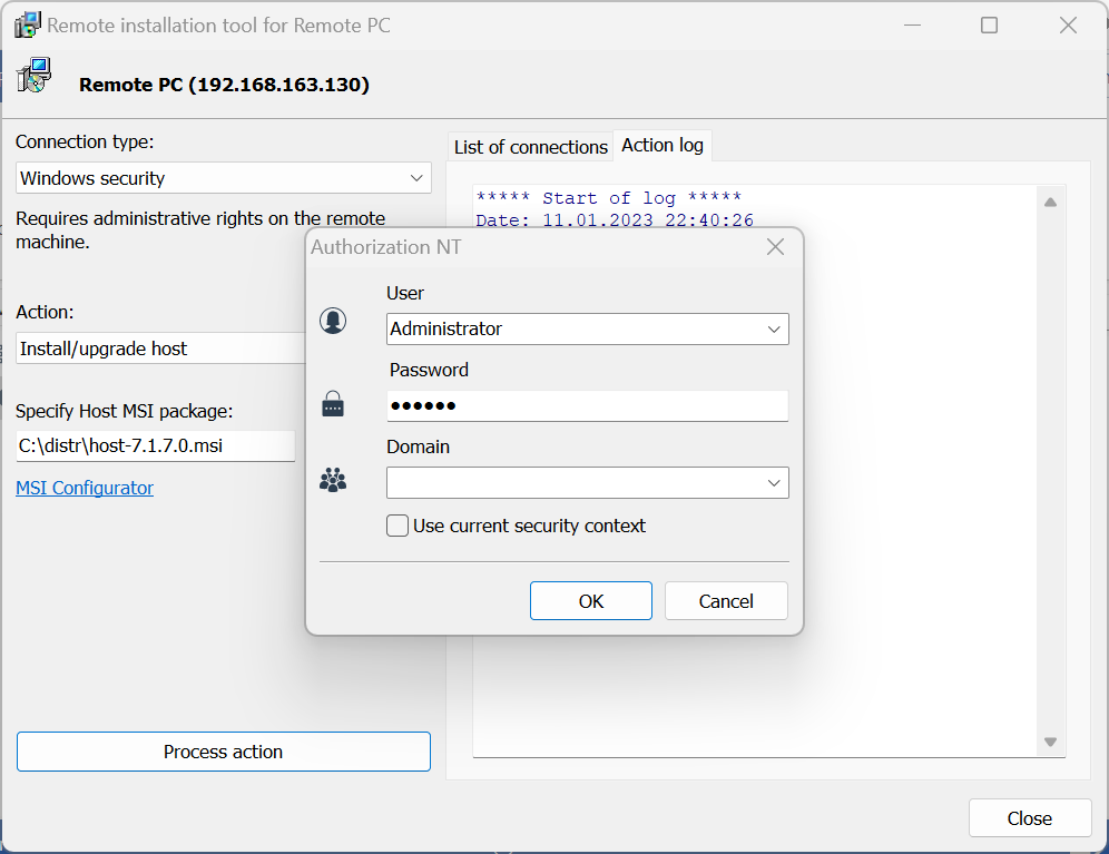admin$ shareคุณต้องมีสิทธิ์ของผู้ดูแลระบบในคอมพิวเตอร์ระยะไกล ตัวอย่างที่พบบ่อยของการใช้ตัวเลือกนี้คือการ "ติดตั้งแบบผลักดัน" Host ไปยังคอมพิวเตอร์ระยะไกลทั่วเครือข่ายของคุณ. - ความปลอดภัยของ Remote Utilities—เชื่อมต่อกับคอมพิวเตอร์ระยะไกลโดยใช้ "ความปลอดภัยของ Remote Utilities" วิธีการตรวจสอบสิทธิ์ ตัวอย่างที่พบบ่อยของการใช้ตัวเลือกนี้คือการอัปเดต Host ระยะไกลผ่านทางอินเทอร์เน็ต.