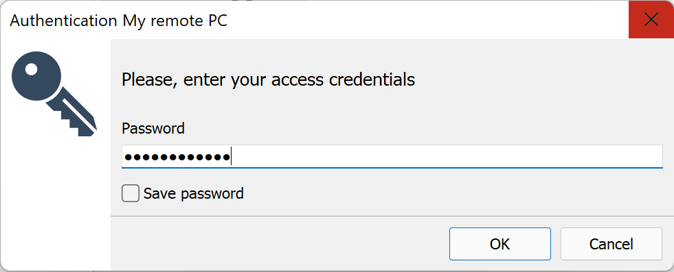- Erişim şifresini girin ve Tamam butonuna tıklayın: