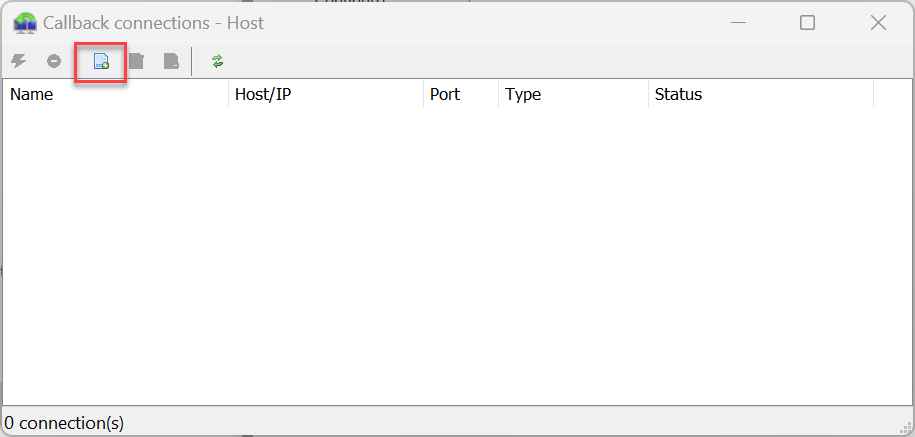 - 回呼连接窗口将出现。单击工具栏上的 添加连接 图标: