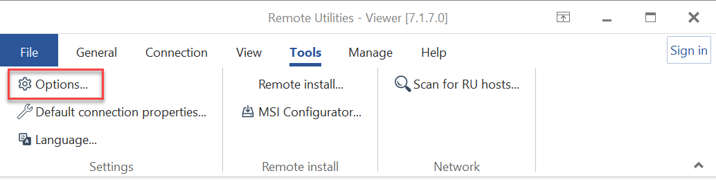 - 在 Viewer 中选择 工具 选项卡,然后点击 选项: