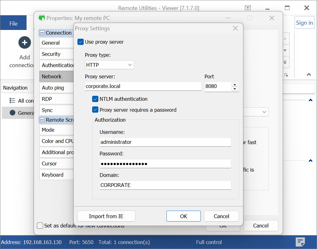 如果您的公司使用代理服务器,您可以在 Host 和 Viewer 端配置通过代理的访问,这取决于代理在哪里。